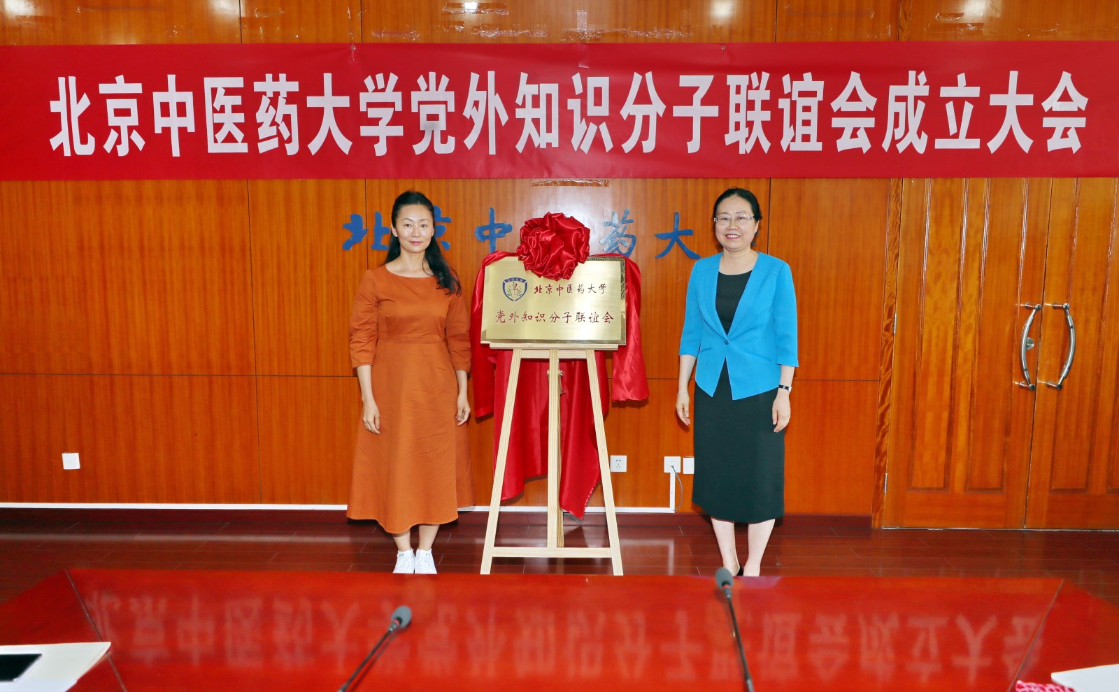 市委统战部党外知识分子工作处袁慧凤副处长与谷晓红书记一起为北中医知联会揭牌