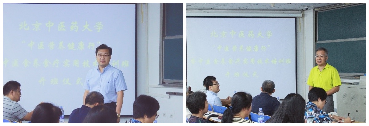 本次课程由三位具有丰富教学和临床经验的教授为各位学员从专业角度讲解中医食养食疗知识,普及中医基础知识,为学员释疑常见的养生问题,推广正确、专业的食养食疗实用技术。开课当天座无虚席。首先由中医学院党委书记孙传新为本次开班致辞。孙传新书记表示,本次培训班是世界杯竞猜平台“中医营养健康行”的先导项目,学院对本次活动给予厚望,希望能通过本次培训班2天的学习培养出一批优秀的中医营养知识的宣传者,为广大群众宣传正确的养生观。随后刘斌教授代表九三学社朝阳区委为本次活动致辞。做为中药研究领域的专家,刘斌教授表示中医中药不分家,食养食疗是中医中药与生活最密切相关的环节,刘教授非常感谢中医学院养生康复教研室的老师能抽出宝贵时间举办这次培训班,同时自己作为学员之一希望能通过本次培训班学习掌握正确的中医养生知识,为自己、为家人、也为周围群众推广中医知识,做中医中药文化的宣传者。