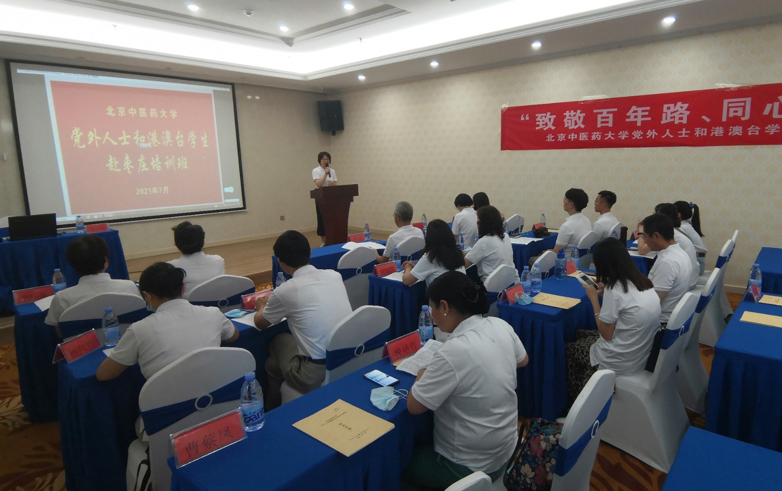 开班式上,学校统战部常务副部长郭辉在致辞中指出,本次活动是学校庆祝中国共产党成立100周年、引领党外人士开展党史学习教育背景下组织的学习培训,旨在加强党外代表人士思想政治引领,引导大家坚定与中国共产党同心同行的初心和使命。