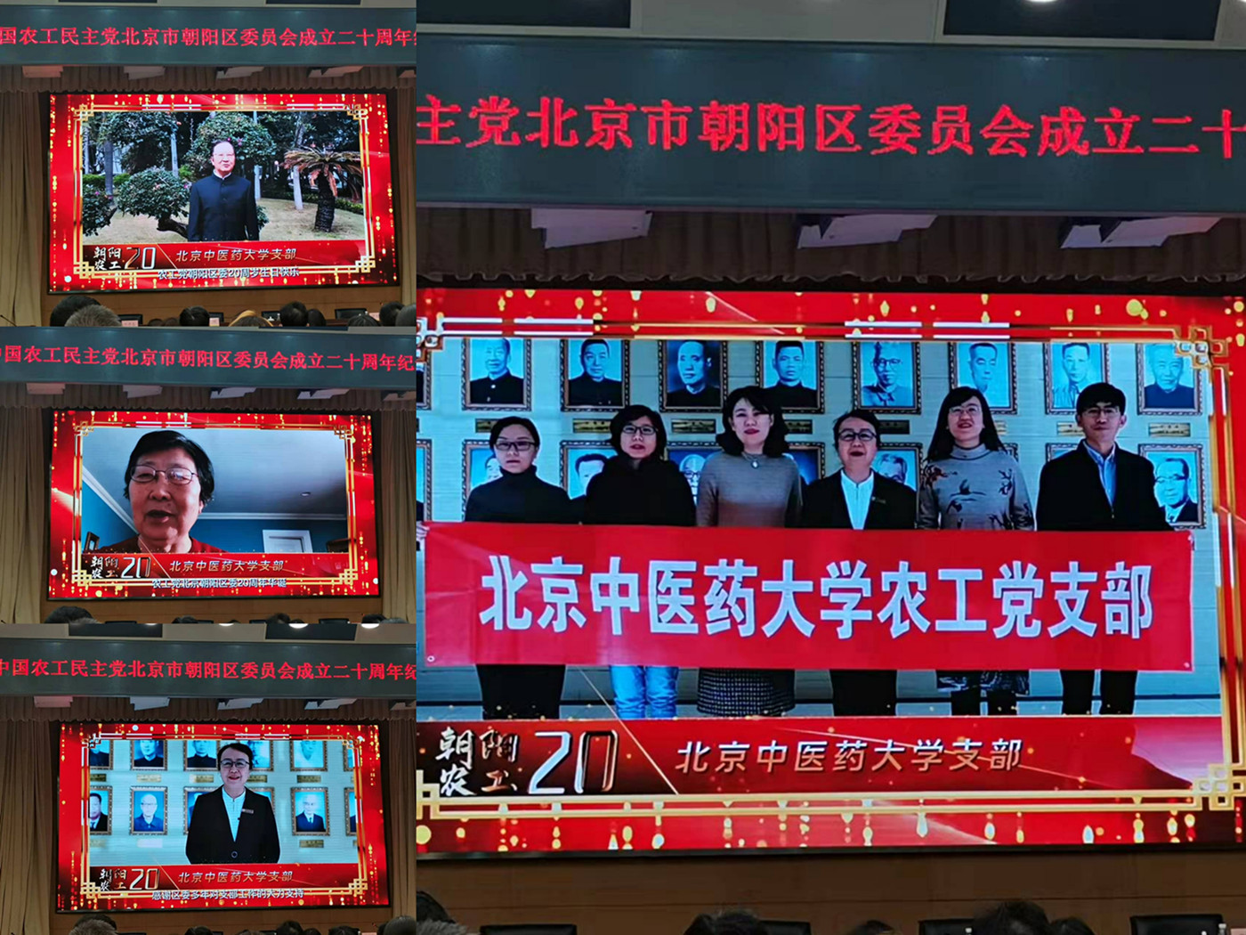 在各支部祝福视频播放环节,由我校农工支部制作的,支部成员全国政协委员张其成教授、原全国政协委员尉中民教授及新一届支委会在建校之初学术大师(其中9位为农工党员)照片墙前录制的祝福视频,制作专业、特色鲜明,彰显了我校农工支部深厚的文化底蕴和组织能力,受到了与参会代表的一致好评与称赞。