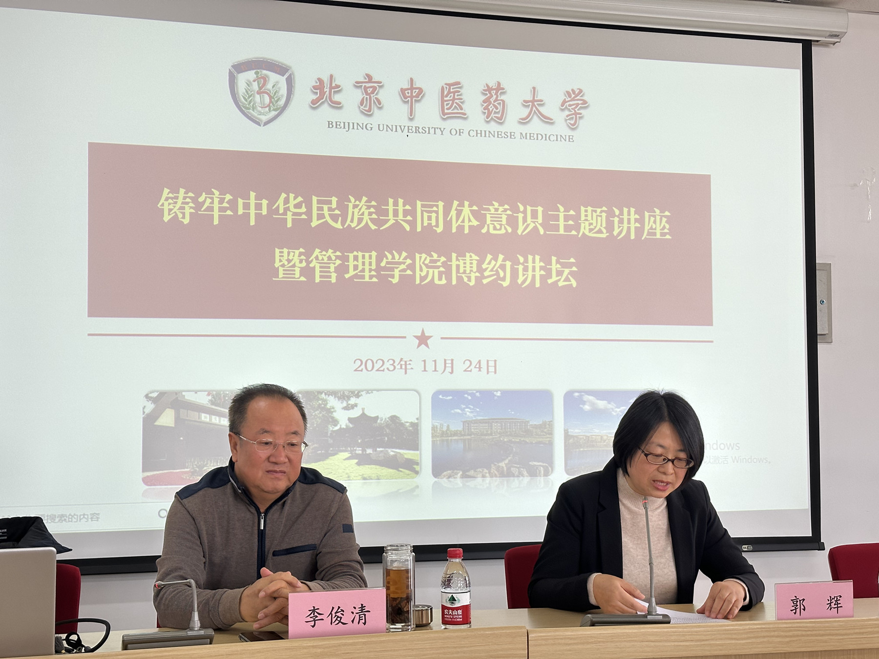 2023年11月24日下午,我校铸牢中华民族共同体意识主题讲座暨管理学院博约论坛在管理学院331报告厅顺利举行。中央民族大学李俊清教授应邀开展了题为“国家治理现代化视域下的民族宗教事务治理”的主题报告。学校党委统战部常务副部长郭辉主持报告,学校民族宗教领导小组成员单位负责人和相关工作人员、学校二级党组织统战委员、学生专职辅导员以及管理学院师生现场聆听了本次报告。