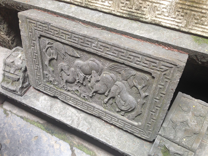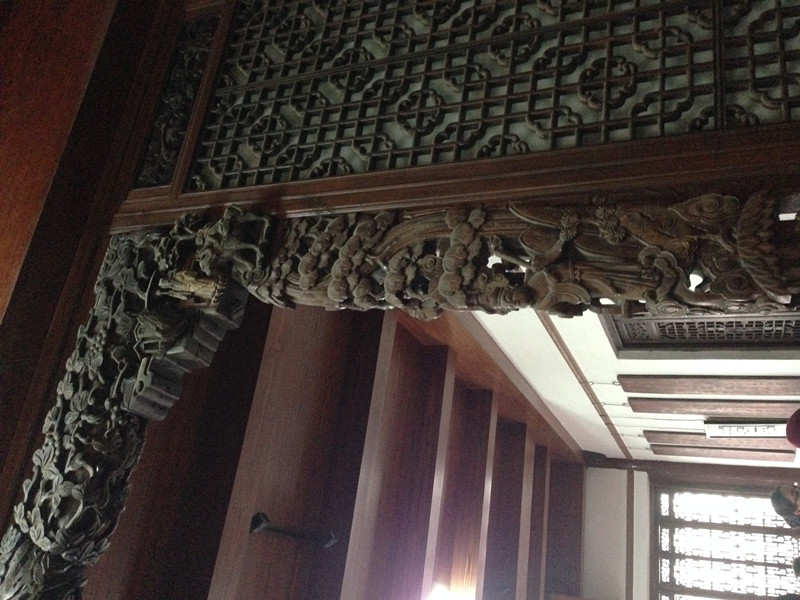 古徽州的建筑装饰非常具有特色,其中木雕是最常见的建筑装饰,由于安徽盛产木材,便于就地取材,对房屋的建造提供了极大的便利。因此木雕在古徽州建筑中大量使用,并形成具有题材广泛、雕刻手法细腻、表现力强等特点。此外,石雕、砖雕也是古徽州建筑装饰的特色之一,雕刻手法多样,具有很强的装饰性,由于徽州地区雨水较多,砖石用来筑基脚可以防雨防潮。雕刻内容涉及亭台楼宇、奇花异草、飞禽走兽、宗教风俗、历史典故、戏剧人物、寓意图案、题词书法等等应有尽有。(图11、图12、图13)