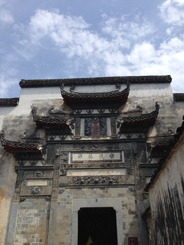 门楼也是古徽州建筑的一大特色,在徽州方言中,门楼称为“门阙”,阙在古代封建社会的贵族侯爵中是重要标志,门楼直接体现屋主人的显赫地位,也是一户人家贫富的象征,因此古徽州人对于门楼的建造和装饰尤为重视,形成极具特色的建筑构成之一。(图14)
