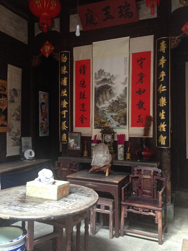 楹联各地都有,但若以风格之多样、内容之广博、文采之飞扬排名,古徽州楹联当位于前列。比如“几百户人间无非积善,第一等好事只是读书”、“传家礼教敦三物,华果文章本六经”、“清以自修诚以自勉,敬而不怠满而不盈”、“寿本乎仁乐生于智,勤能补拙俭可养廉”、“慈孝后先人伦乐地,诗书朝夕学问性天”等等等等。一方面楹联可以使居室变得更加雅致,另一方面这也说明崇儒尚文的风气在古徽州非常盛行。(图15)